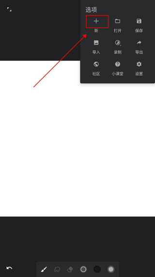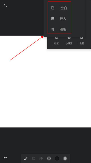 3、创建完之后点击右上角第一个支架,里面有各种绘画工具、编辑工具等。