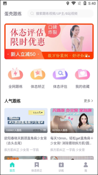 这款“蛋壳跟练”软件是专为女生设计的健康锻炼App,主要针对女性常见的体态问题提供矫正计划,比如腿型、马甲线、瘦腿、产后修复等等。它通过视频教学,让用户体验在家就能轻松塑身的好处。软件功能挺多,有体态评估、一对一矫正服务、海量跟练视频,还有智能训练日历和社交互动功能。不过,使用前需要登录账号才能看视频,这点可能有点麻烦。