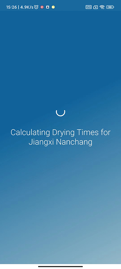 2、进入软件主界面,上方显示的是“current conditions当前城市情况”,下方显示的是“estimated drying times预计晾干时间”;