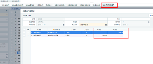 那么账款冲销后的出库入单转凭证则分别在原来的基础上以负数显示对应冲销的金额