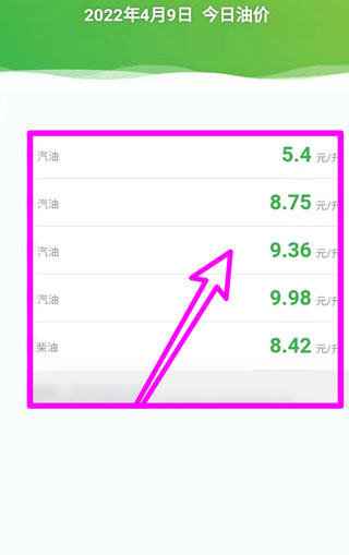 3、最后在详情界面就可以看到最近的油价了。