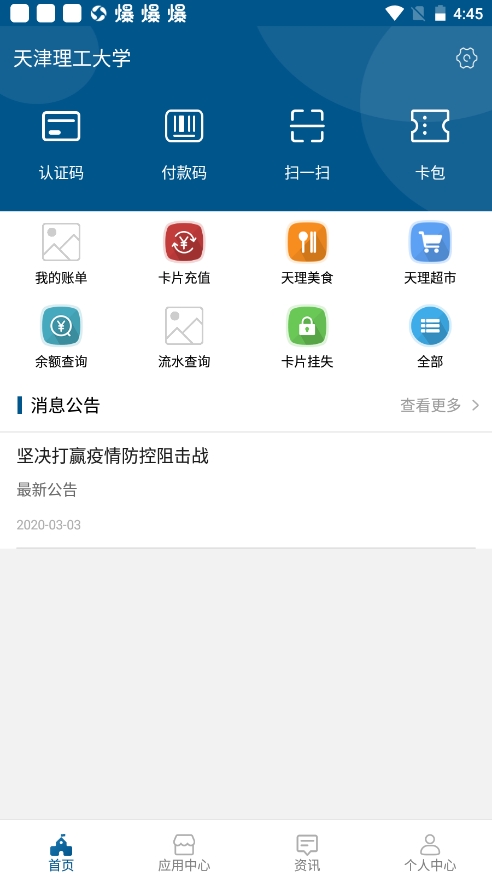 天理校园卡app是一款专为天津理工大学学生打造的校园服务应用,界面全新设计,容易上手,旨在为广大师生提供便捷、高效的校园生活体验。