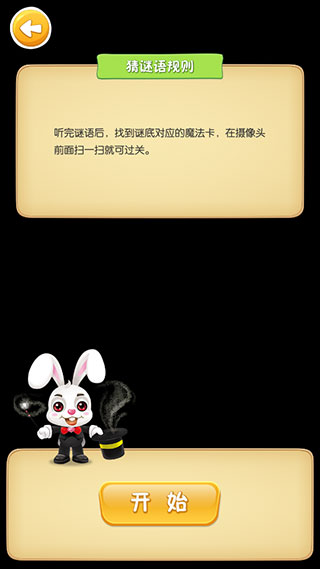 2、猜谜语,找到谜底对应的魔法卡,在摄像头前面扫一扫即可过关