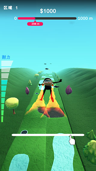 2、玩法方面:比较的通缩简单,点击屏幕发射,通过左右滑动控制滑动方向,触碰沿途道路上的各种助力道具,帮助达到更远的地方。