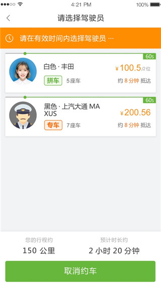 3、多种出行方式可供用户选择,一键预约司机就会在指定时间内到达方便又省心。