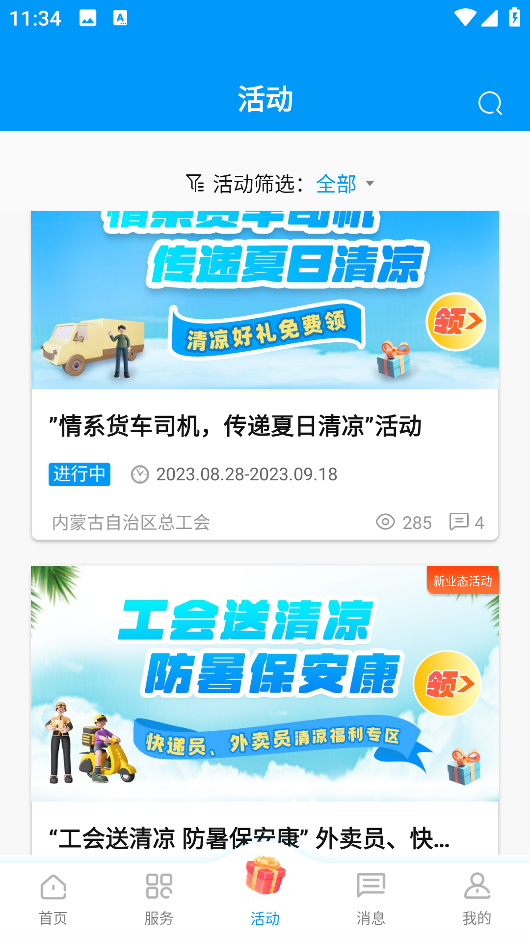 2、实名认证通过以后,点击主页中的活动,里面有非常多的活动
