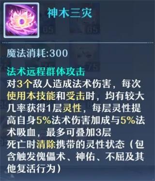 神木三灾:可造成大量法系伤害,并为自身提供法伤加成、法术吸血加成