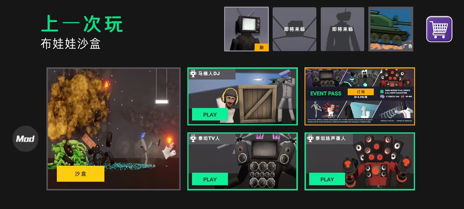 • 各种环境,包括人类游乐场和僵尸沙盒,来测试您的创作