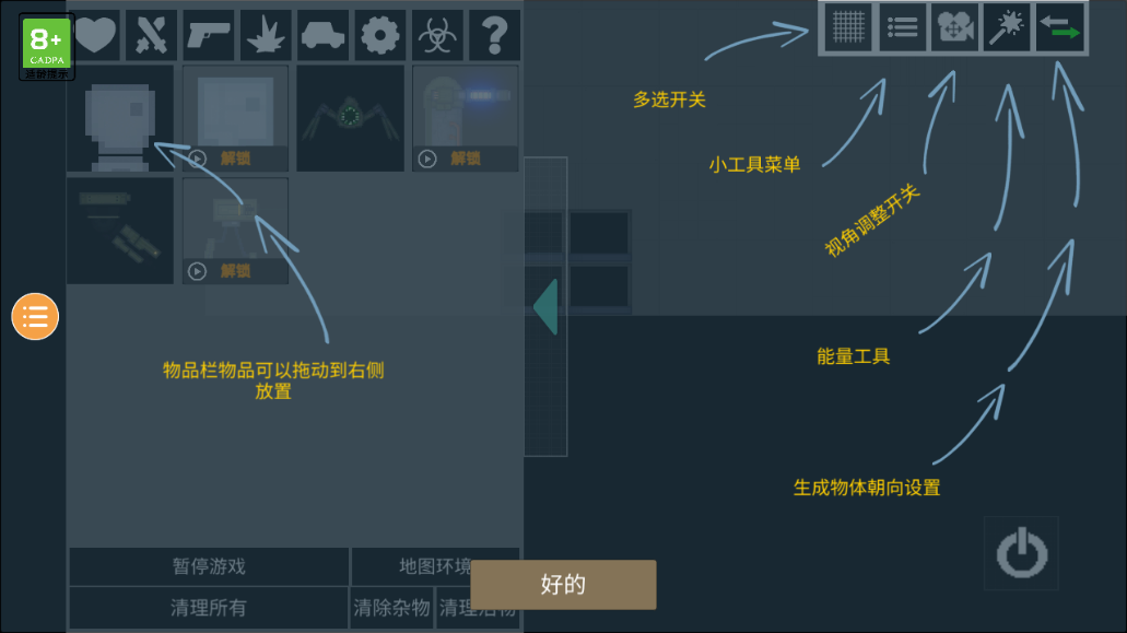 游戏包含各种现代武器供您使用。AK47 m16 单兵火箭筒 激光 标枪导弹 云爆弹 氢弹 原子弹等...当然制作各种机械机器也是可行的,这取决于您的聪明才智,超解压的人类娱乐场游戏,快来和我一起玩耍吧。