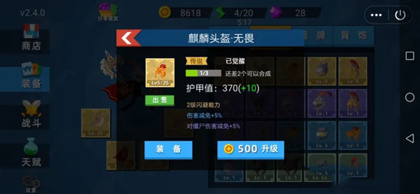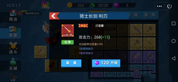 等级可用金币升级,另外抽到装备时选择看广告可以直接升级到5级。