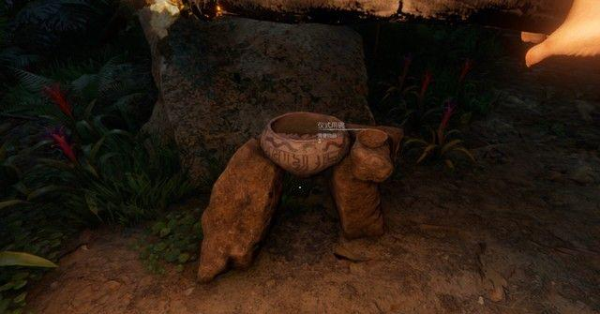 在部落废墟的后面,借助火把的光可以找到一个仪式台,这就是触发主线的关键物品,接下来需要使用它进入幻境,你需要在这里制作小火堆才能继续。