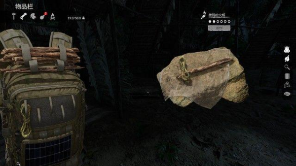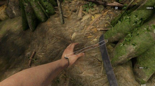 你需要采集小木棍和木棍才能制作火堆,而小木棍不容易直接获得,需要继续加工木棍才行,使用砍刀继续挥砍木棍将其砍成两个小木棍。之后和小火堆蓝图互动,制作一个小火堆。