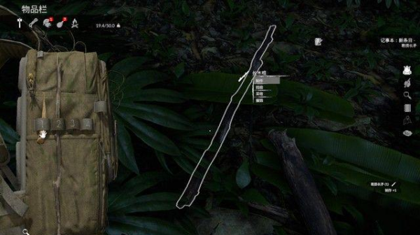 手上的短刀战斗效能太低,为了更好地应敌,你需要更长的武器才行。和地上的长木棍互动,将其制作成简易长矛,注意,不要选择采集,不然长木棍会变成普通木棍。