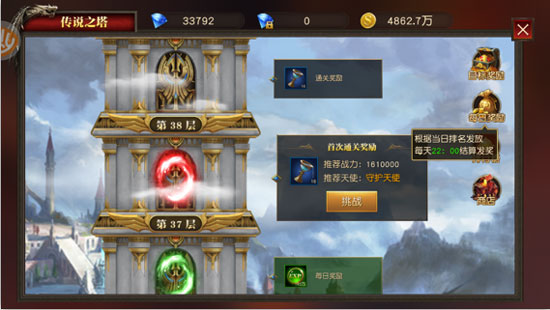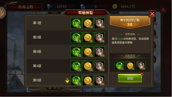 ③ 每日奖励:根据结算时的层数确定奖励。每日22:00结算,挑战层数越高奖励越丰厚。每日奖励给予您经验、金币和传说币奖励。