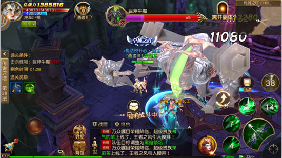 游戏中有丰富的PVP玩法,比如同屏杀怪、跨服夺宝等,让玩家随时随地都能参与激战。此外,还有佣兵任务、经验副本和战盟任务等多种方式帮助玩家快速升级和获取资源。尤其是传说之塔玩法,挑战层层关卡,获取丰厚奖励。