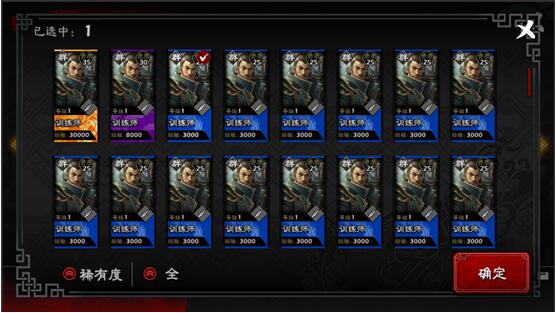 武将训练需要消耗经验卡及铜币,武将等级越高训练所需要的经验值及铜币越高