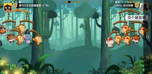 猴子很忙是一款卡通风格的2D横版弹射对战类手游,该作以小动物们作为玩家操纵的对象,玩家只需要弹射自己的小动物,把敌方动物击落即可。说起来容易,可这些动物都有自己独有的性格的技能,不掌握这些可是无法轻松获得胜利的。另外,游戏操作非常简单,玩家控制的初始角色都是猴子,通过投掷武器来将对方宠物消灭,等到获取一定数量道具则会解锁各类不同动物,让游戏更加欢乐有趣。目前游戏内为玩家打造了非超过50多种动物,并且其中每只动物的性格都表现得生动形象、机智可爱、萌中带贱的特色,并且每一个动物都有自己的独特属性,你能够将他们自由的组合成一个阵型,合理的搭配阵容是您获胜的重要条件。