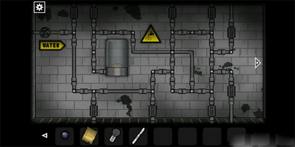 退出房间再来到工具房门口,根据水池里的提示打开铁门。进入房间后连接水管,再点击左上角的阀门即可。