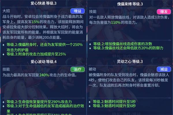 技能“太极”能给全体队友提供一个很厚的盾,同级别战力下约等于无敌十秒了。其他技能的输出和控制能力都不错,自身的血量也较高。