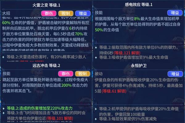 再看她的大招,护盾被击破导致机甲解除后,她又会释放天雷打击和减速敌人,随后马上再穿上机甲,几乎可以说是没有弱点。