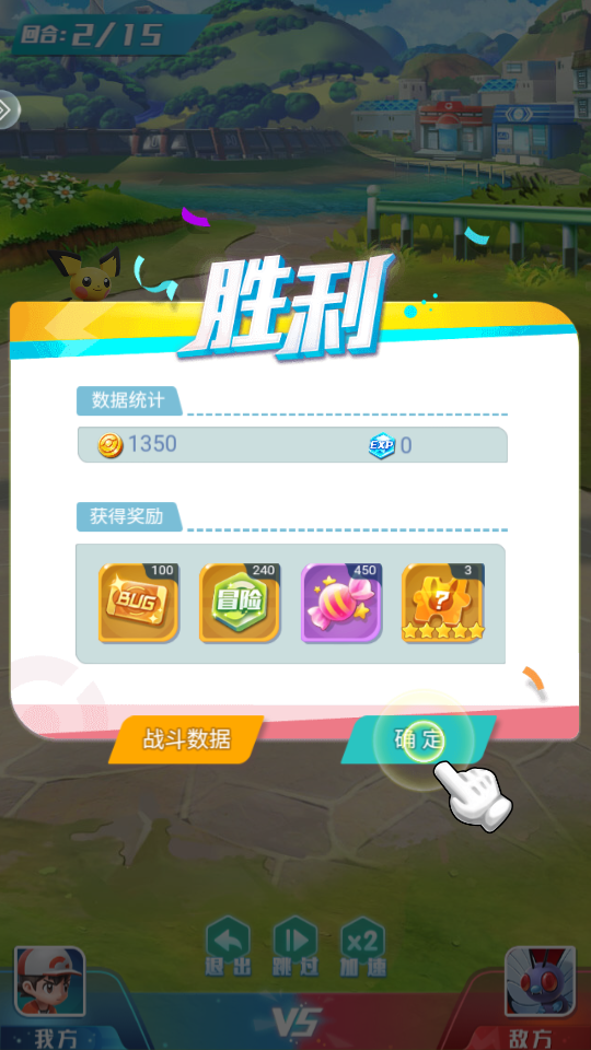 通过自动战斗功能完成战斗,点击确认战斗结果并领取相应奖励。