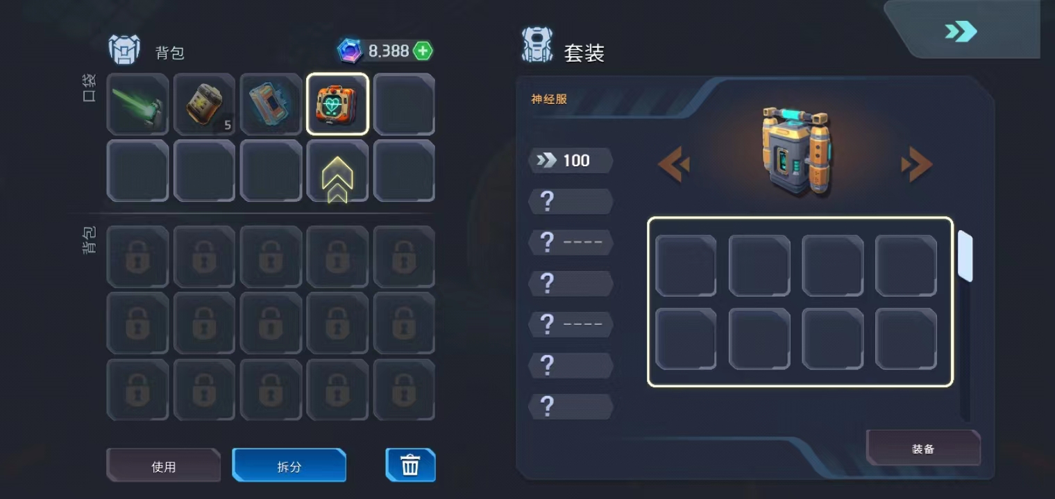7、先把清理瓦砾的工具装备上,把左方的物品拖动到右方;