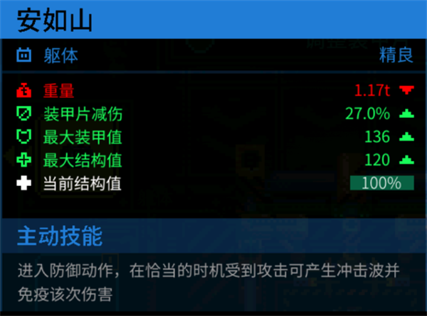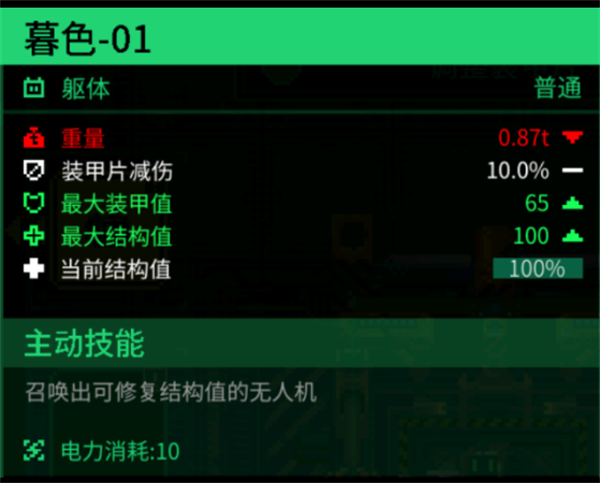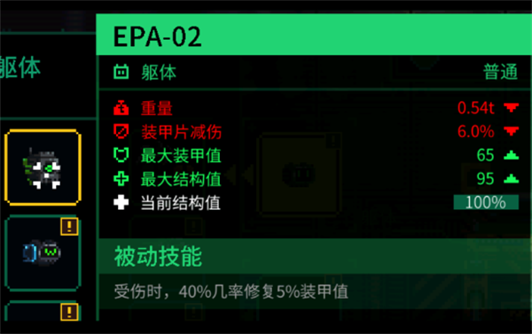 三个关于躯体的内容说完后,接下来要进入第二阶段,那就是躯体的选择。因为合金重组里的躯体(其实不只是躯体,其他模块同理)是五花八门的,比如说这款减伤、血甲都低,但是有能够回血的技能。