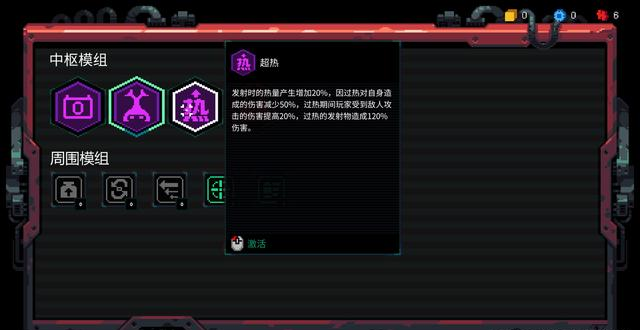 「中枢模组」与「周围模组」不同,对于机甲的基础提升有不同的方向,建议玩家通过自己的战斗风格选择适合的「中枢模组」。例如对输出有要求的玩家可以选择超热模组,战斗力会倍增,但缺点也是容易过热。
