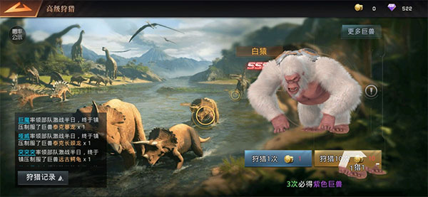 但是,通过探索模式能够获得的狩猎币,基本上都是普通狩猎币,高级狩猎币是很少的。小伙伴们如果想要获取比较高等级的恐龙的话,那么就需要关注平时的一些活动和主线任务了,通过这些主线任务和活动的小伙伴们,不仅可以普通的狩猎币,有机会获得高级的狩猎币,在高级狩猎场中进行捕猎。