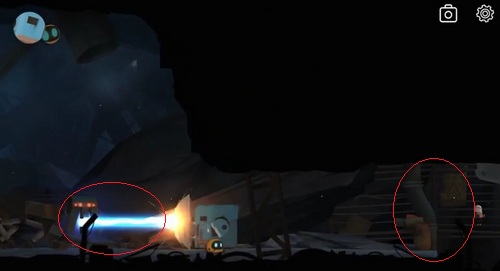 4、好了,开始过剧情。现在开始一直往右边走,切换救下小机器人。再往右走,再次切换就可以了。