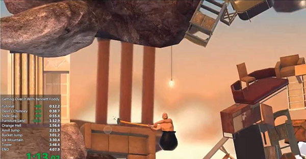 玩家要在游戏中控制一名坐着罐子里的男人,通过手中的铁锤不断向前行走,顺利达到终点就可以进入到下一个关卡。其实游戏的玩法很简单,只要以锤子作为支撑点,让自己不断前进,但是极为考验玩家的耐心和操作技巧,因为是通过物理引擎的作用,所以每次前进的位置总是会和想象中的有所差距,操作起来没有想象的那么简单。而且即使你好不容易爬到了最高处,一个不小心也会从高处掉落下来,就要从头来过,所以这是一场持久战,感兴趣可以来下载游戏试试看!