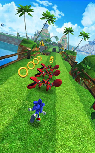 索尼克冲刺是一款经典动作跑酷游戏,索尼克作为世界上极具知名度的刺猬,从一诞生就凭借其可爱的造型和无可比拟的速度风靡全球,让无数的玩家成了他的忠实爱好者,而本作则沿袭了经典的索尼克造型,还配有超多服饰供玩家体验。玩家通过操纵索尼克进行各种跑酷,穿越重重障碍,击败拦路的怪物,到达终点,相当的有趣!在奔跑的过程中,玩家需要注意收集金环,当然,路途中会有很多不同的障碍物,要躲过它们,不然会被撞死的,欢迎大家来挑战。