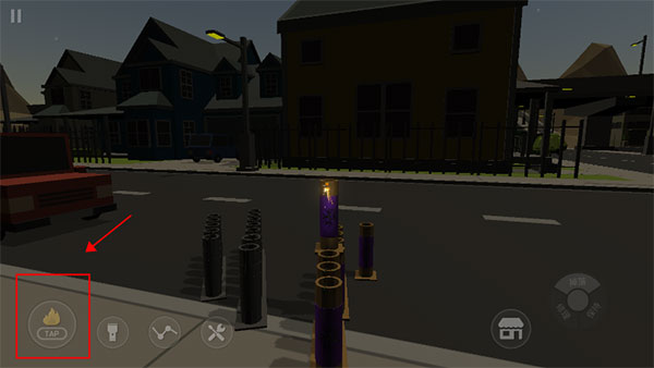 10、摆放好后,我们点击滑动屏幕对准烟花,然后点击旁边的打火机就可以引燃引线,点击一次即可,其余烟花会一起被点燃