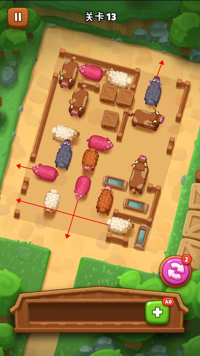1、进入游戏后,你需要移动栅栏里的动物将所有动物都赶出来进行两两匹配