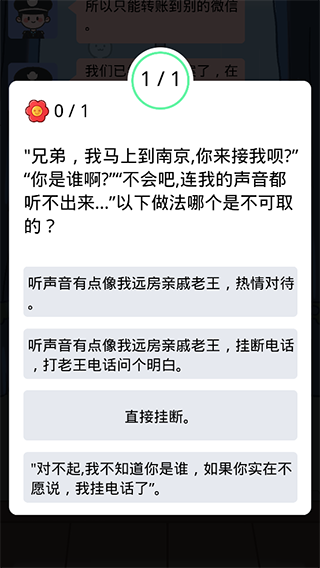 反诈达人是一款互动剧情游戏,由珠海市公安局金湾分局指导、石小坑团队打造。它结合了公安的专业知识和创意,帮助大家提高防诈骗意识。游戏中,玩家扮演受害人,体验各种骗局流程,通过选择影响故事走向,学习如何识别和防范诈骗。游戏基于真实案例改编,让玩家更贴近现实情况,互动性强,教育意义突出。玩法简单:下载后进入,选择剧情中的选项,结束后有专业人士科普知识,最后还有测试题检验反诈能力。我觉得这个 game 既有趣又能学到实用技能,适合想提升防诈骗意识的朋友来试试!