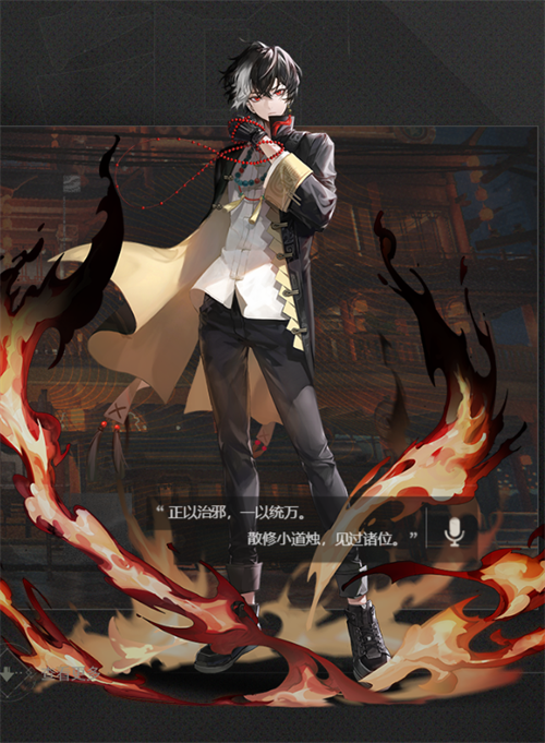 蜃楼特聘职员,实力极为强劲的风水师,他自幼跟随师门修习道法术数。这位青年给人的第一印象是孤僻寡言,但熟识之后,烛也会流露出面冷心热的一面,比如提供一些免费看手相之类的服务。