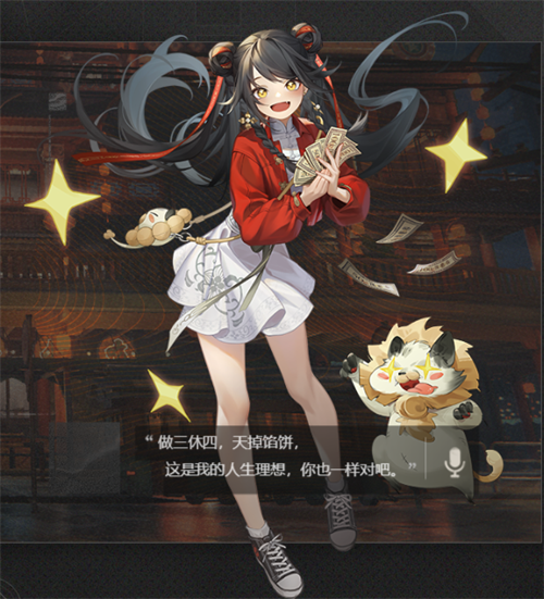 她最大的愿望就是早日成为一位可以疯狂购物、游泳池养鱼的超级大富婆。即便如此,当你听到这个少女一边接受委托,一边恶狠狠地喊出“加油,早日把蜃楼干倒闭!“之类的口号时,也千万不要惊诧。