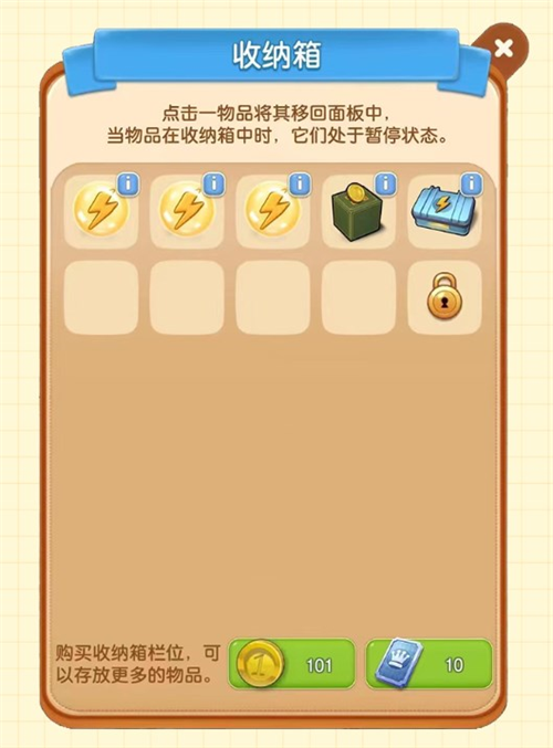 4、消耗金币和点券可以解锁更多收纳箱格子