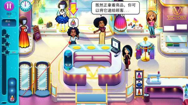 4、点击顾客就可以将物品给顾客,当所拿物品超过三个时,点击可以删除