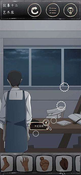 1.最右边两个小点了,放衣服和包,左边的放女佣b,中间放男主,判定真相,获得成就,异乡人