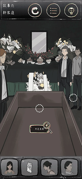 3.父亲放左边,妖艳的母亲放右边,药粉放父亲脸上,判定真相,即可通关