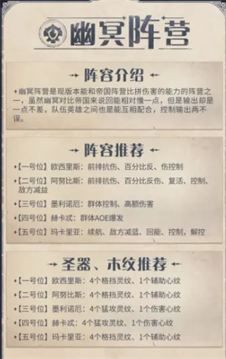 幽冥阵营英雄搭配