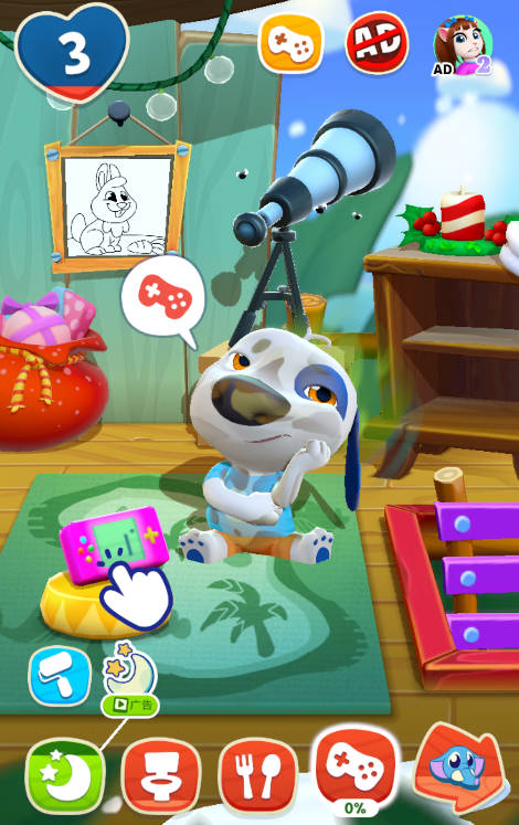 1、在这款游戏中,汉克狗有着丰富的情绪变化,它会根据玩家的互动做出不同的反应。而且游戏允许使用麦克风,这样汉克狗就会用搞笑的腔调重复玩家说的话,增添了不少趣味。