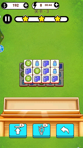 1、游戏的方法很简单, 使用手指点击物品,三个相同的就可以消除,不让下方的位置占满;