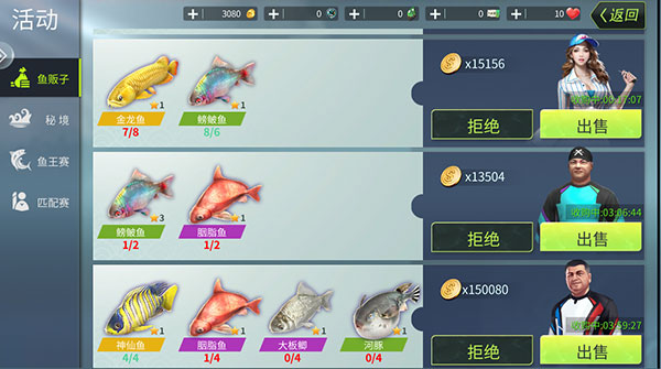 在主界面钓鱼活动里,找到鱼贩子,鱼贩子到来是需要花时间等待的,当然你也可以消耗一些货币,催促他到来,毕竟赚钱之事刻不容缓。