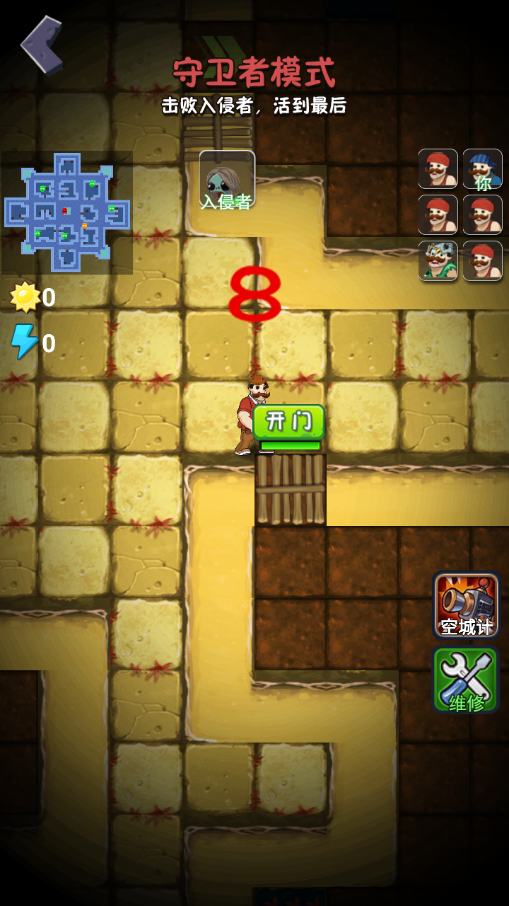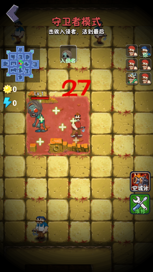 5、然后就进入到守卫者模式,玩家需要击败入侵者,也就是僵尸,然后活到最后;