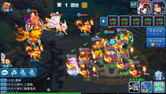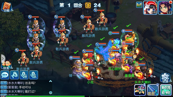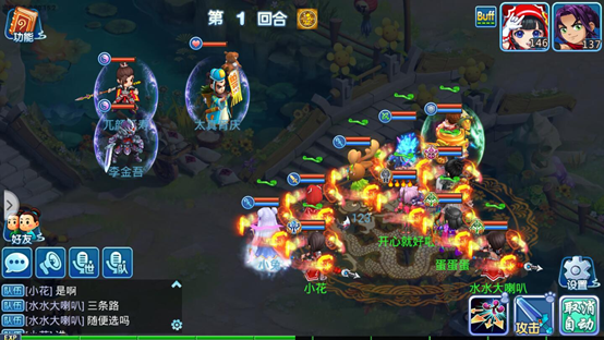 秉承端游时期的精妙平衡,外加多种随机增益保护机制,在水Q手游中可能出现战略行牺牲、计谋型虚招 等表里不一的玩法,正统回合战斗的乐趣就体现在你来我往的烧脑过程。