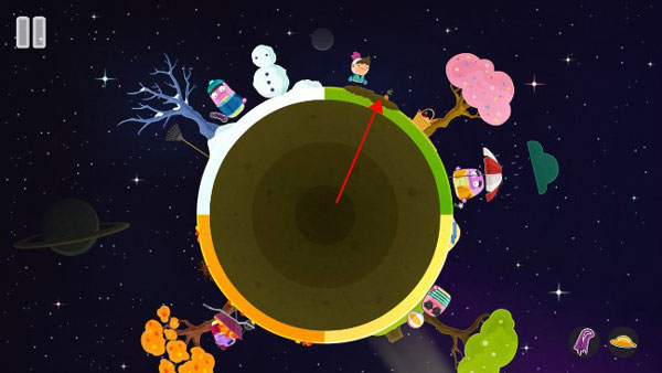 2、点击,让主角来到秋季区域上,然后收集地面上的两处落叶。