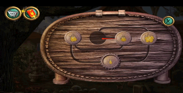 3、向下看,小圆桌上就可以找到窗户把手和提灯把手等,这里还有一个拼图机关,缺了蜗牛和鸟雕像。