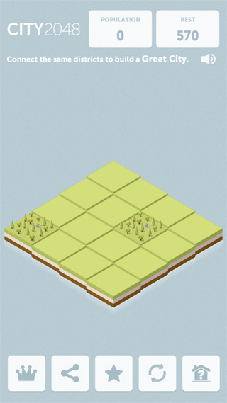 城市2048是一款以竖版界面打造的休闲合成类游戏,世界上最炫酷的土地即将在你的手下形成,带来生机勃勃的世界!游戏画面高清,画风清新,无论是树木、土地、房子的颜色都非常棒,让人如同置身于这个漂亮的村庄中。同时随着游戏的进行,玩家不断的将小村庄扩大,游戏中的音效从花鸟鱼虫的声音变成了汽车,机器的声音,让人感觉到非常的舒适。其实从名字上不难看出,这款游戏就是和2048有关,所以说游戏的玩法和之前的2048玩法也是非常相似的,只不过在这里是利用建筑代替了原来的数字,而我们也可以通过滑动合成出越来越高级的居住环境,看起来不仅可爱,玩起来也是非常有趣。城市2048特色